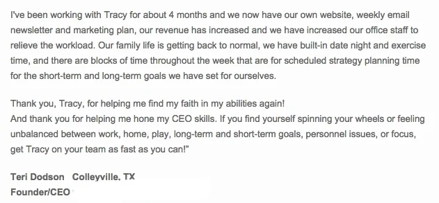 Plus you will have personal access to me with unlimited email support in between all of our calls, should anything come up that you want to run by me or have a question about.